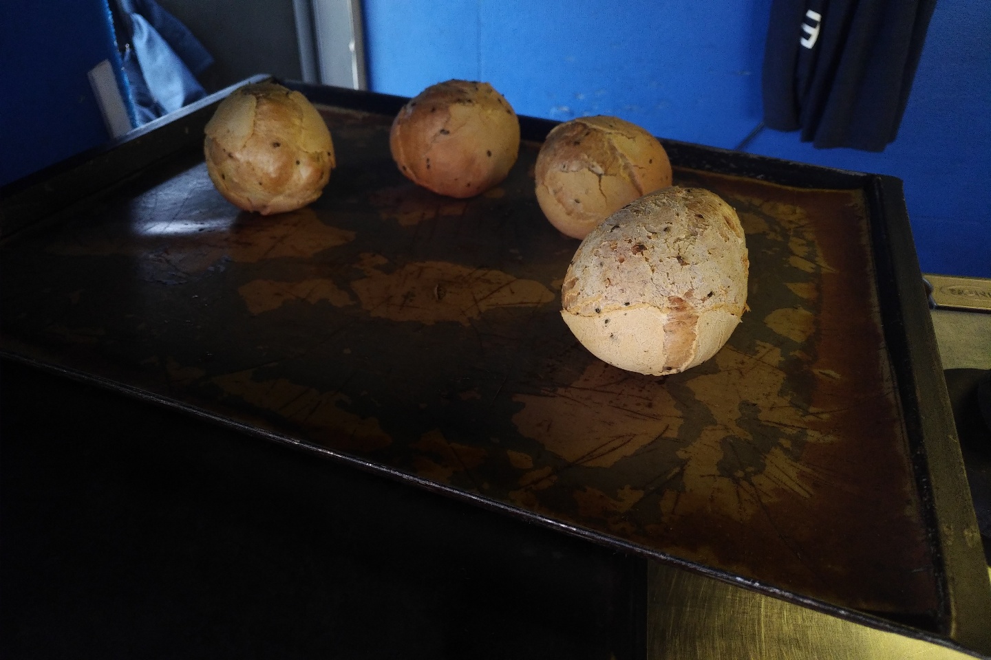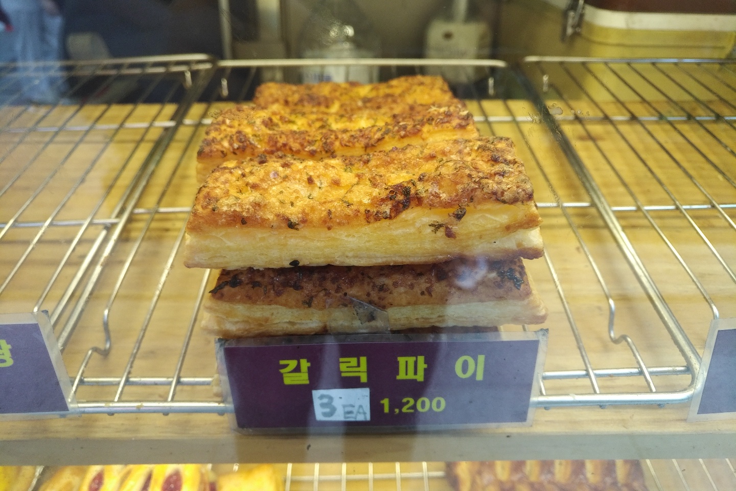 갈릭 파이와 에그 타르트 그리고 아이스 아메리카노를 주문하고 기다리는동안 오븐에서 갓 구워나온 깨찰빵이 보였고,