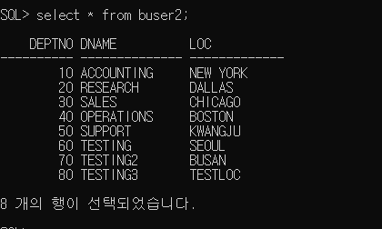 SQL> select * from scott.b_dept2; <== 소유자 scott, 테이블명 b_dept2;