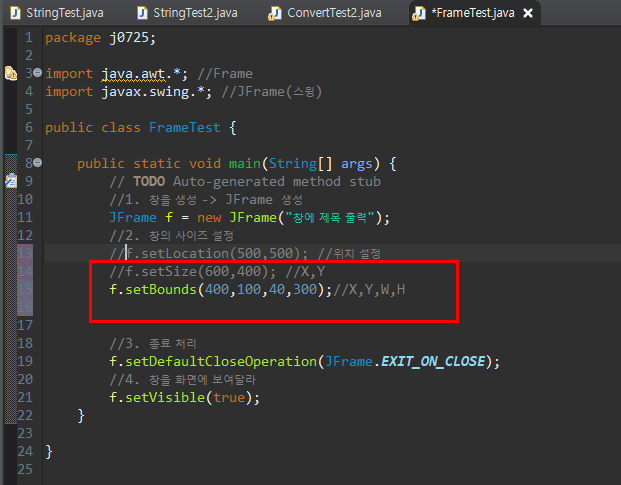 f.setBounds(X축,Y축,가로,높이)