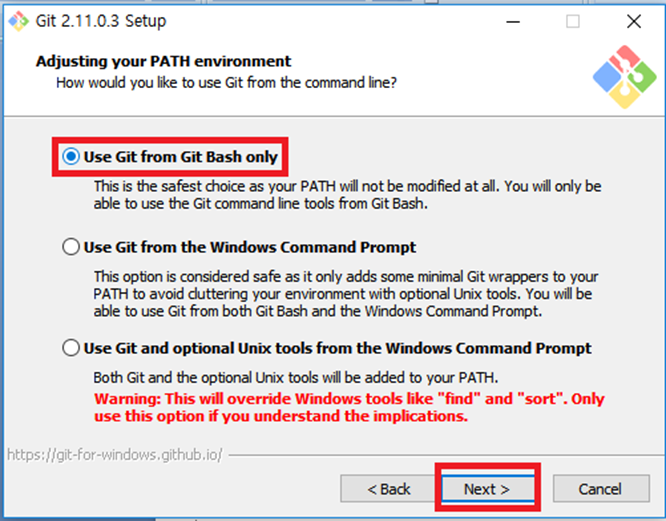 4. Git 설치 와 설정-설치 경로 지정