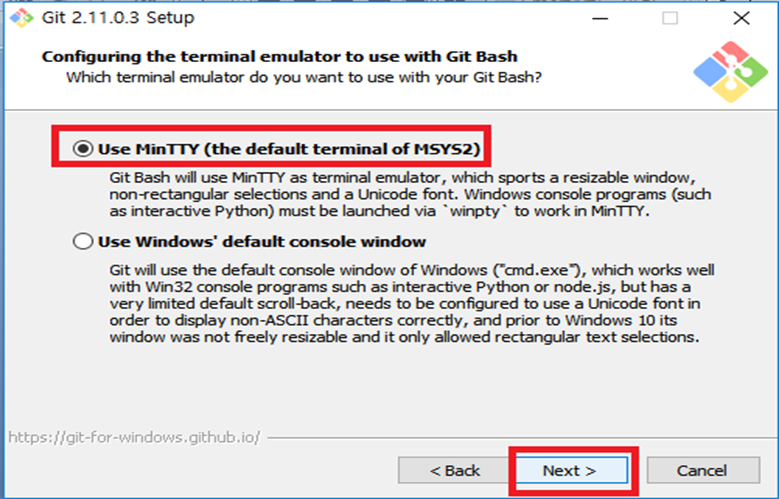 Git에서의 터미널 애뮬레이터 사용유무)