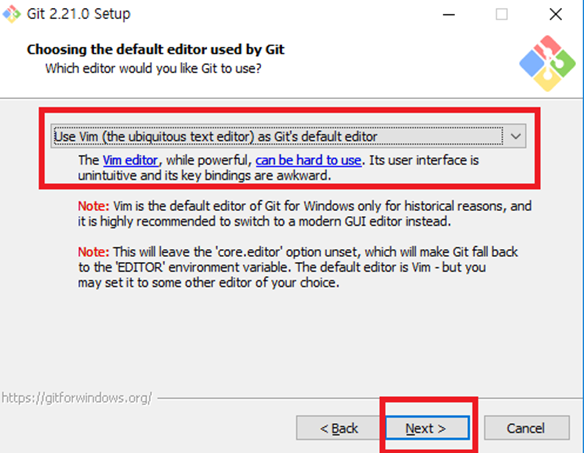 git에 포함된 컴포넌트중 어느것을 사용할지 결정)