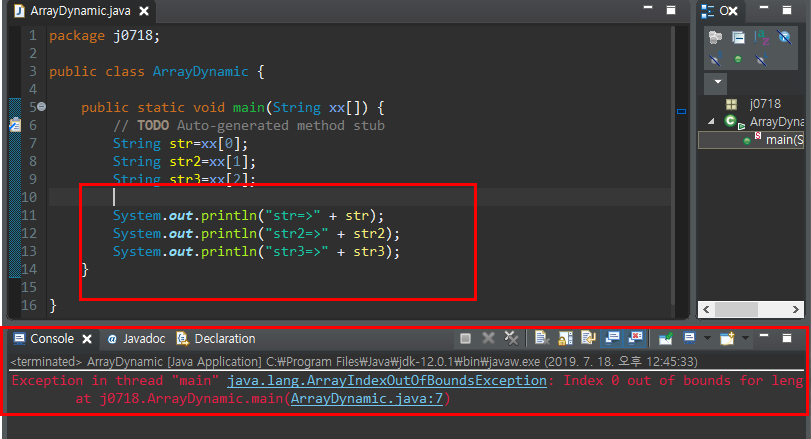 Exception in thread "main" java.lang.ArrayIndexOutOfBoundsException: Index 0 out of bounds for length 0