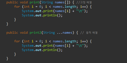 (자료형 ... 배열명) 배열 표시 [] 사용금지. 하지만 여기서 중요한 부분이 있다 만약 두개 이상의 매개변수를 사용한다면?