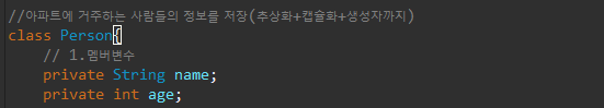 1. 멤버변수를 지정하여준다. 이름, 나이
