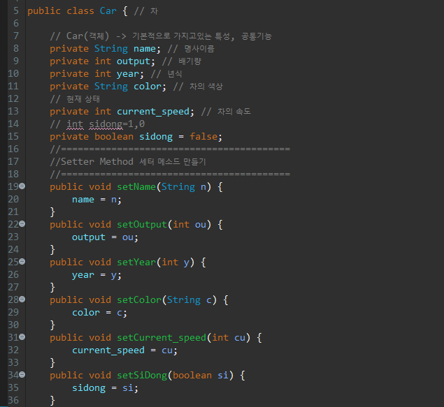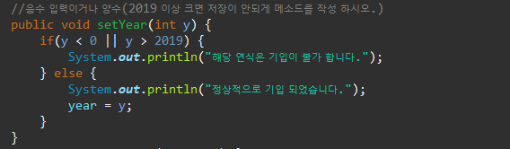 Setter Method => 외부에서 값을 입력 받아서 저장시킬때 사용하는 메소드 이다. [주로 웹 프로그래밍에서 사용]