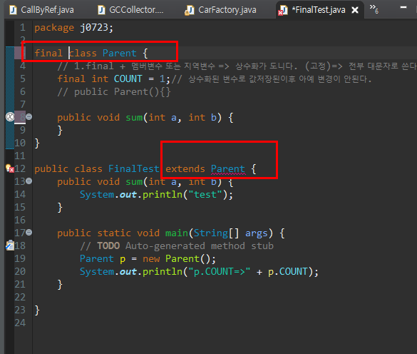 이렇게 Class 에도 final을 적용 시킬수가 있다. 상속조차 안되게 할수있는 방법이있다.