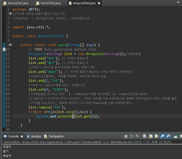 수정과 삭제가 가능한 ArrayList 방식이다.