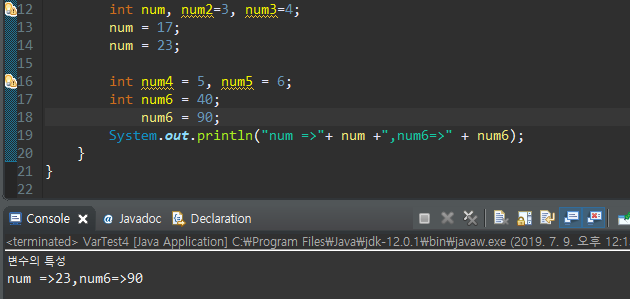 이렇게 같은 변수가 쭉 나열이 될때엔,JAVA는 맨마지막 변수값으로 인직을 하게된다.