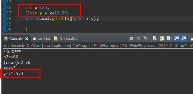 연산 중간에 형이 변환이 되는 경우가 있다. (+ * / - 등등 더하기 곱하기 나누기 빼기) 이때의 형변환은 객체 형변환과도 밀접한 연관이 있다. 그리고 형변환에서의 형은 자료형이 바뀌는것은 의미한다.